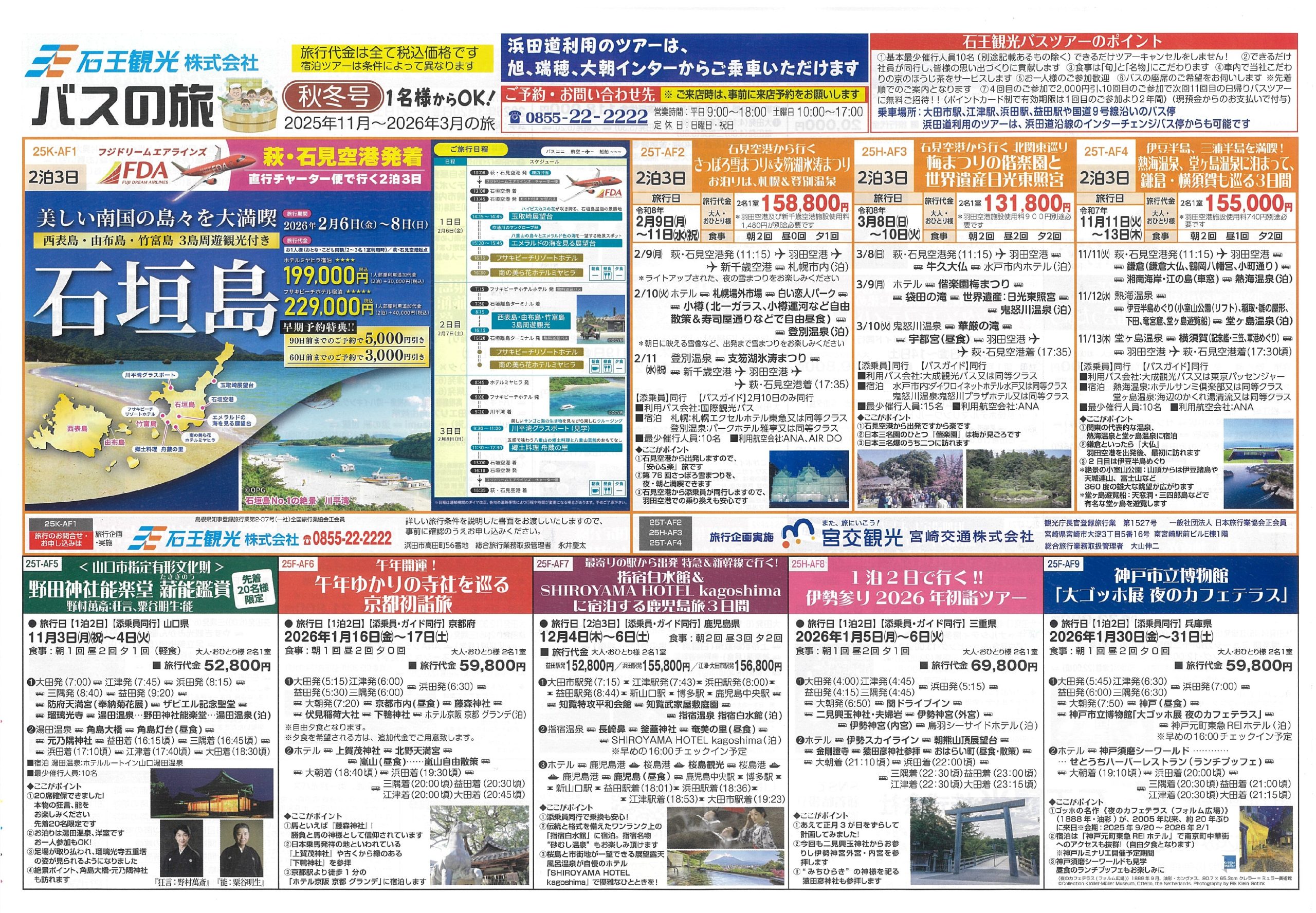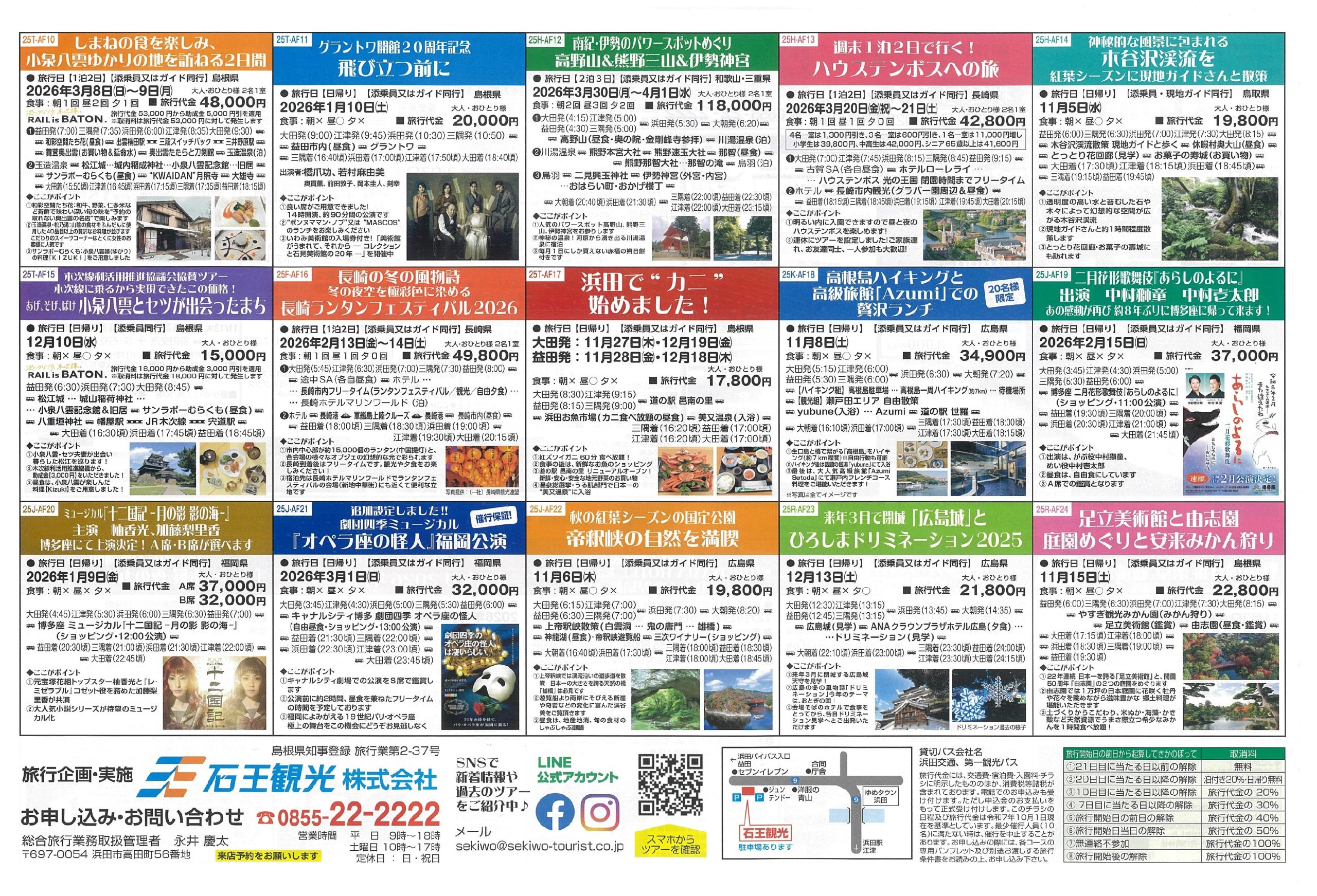 本日10/10(邑南方面のお客様は10/14予定)バスツアーのちらしが新聞折り込みチラシになりました。