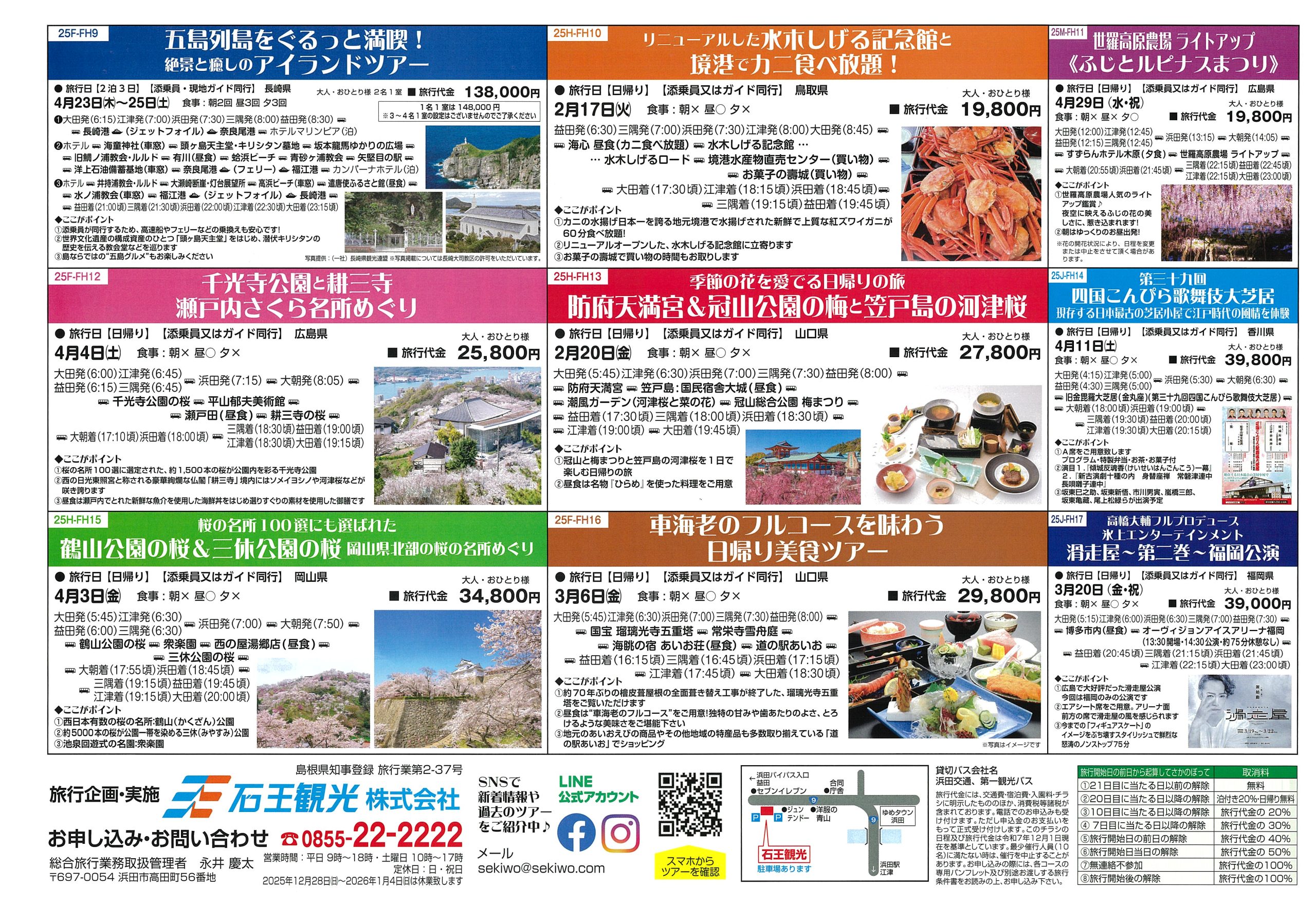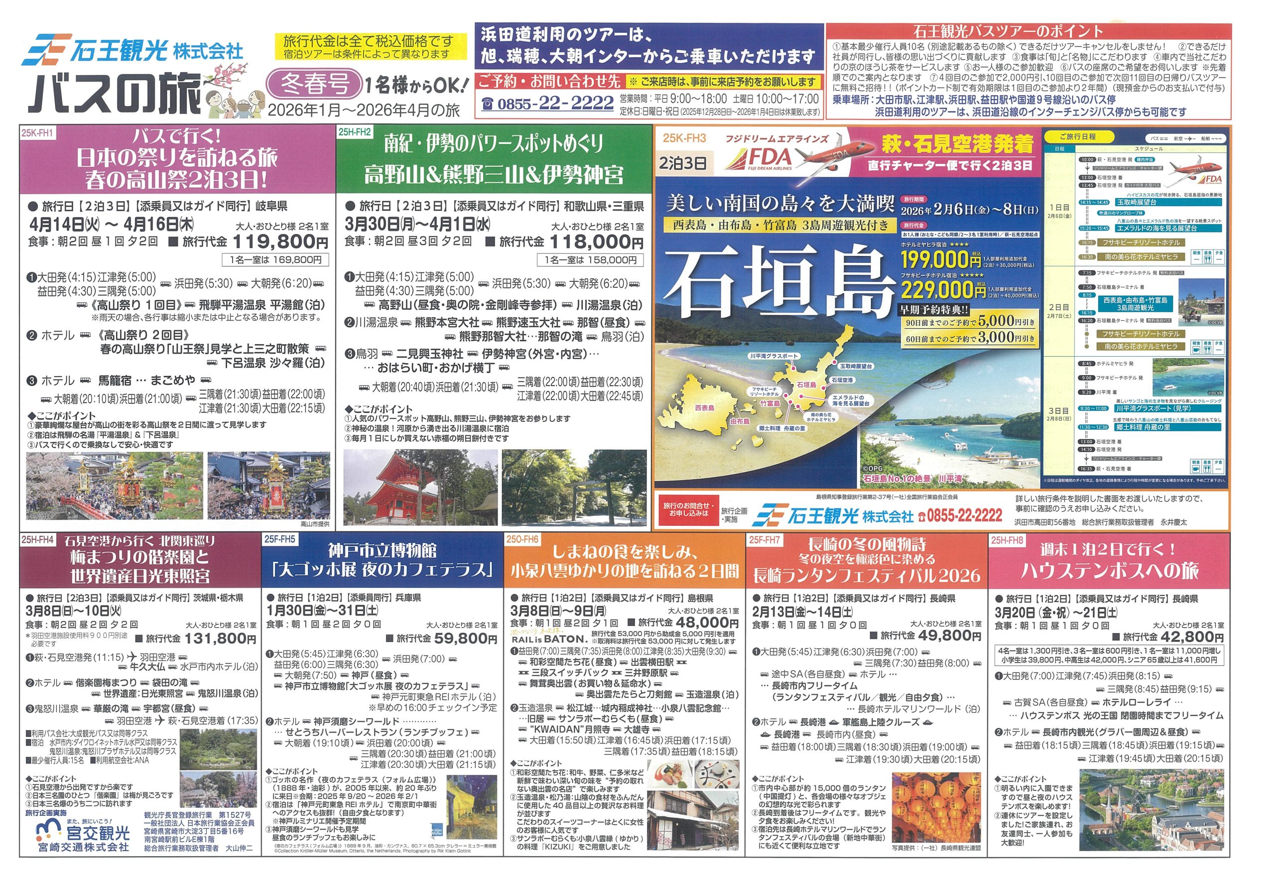明日12/24(邑南方面のお客様は12/25予定)バスツアーのちらしが新聞折り込みチラシになります。