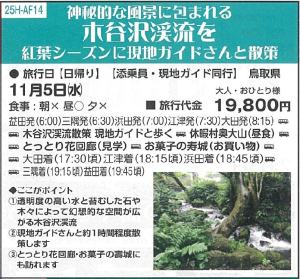 11/5(水)発【日帰り】神秘的な風景に包まれる 木谷沢渓流を紅葉の季節に現地ガイドさんと散策